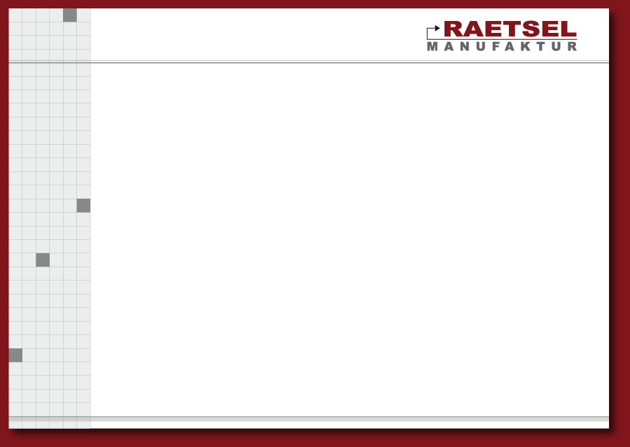 Die Internetseiten der RätselManufaktur GmbH verwenden Cookies. Cookies sind Textdateien, welche über einen Internetbrowser auf einem Computersystem abgelegt und gespeichert werden.